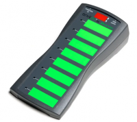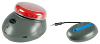 This compact communication device stores many messages which can be accessed by activating the prominent single button. The next message in the series is spoken with each hit.