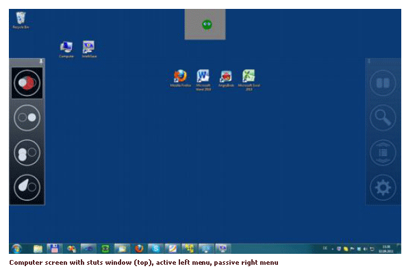 It is possible to access many mainstream programs using the Intelligaze IG-CAM30NT. Desktop V2.0 is the sophisticated user interface developed by Alea and supplied with the Intelligaze camera. If this is not required it can be by-passed for those not yet ready to operate all aspects of computer software. Below are screen shots of the Desktop V2.0 to illustrate the functions. The menus are accessed by gazing slightly off the monitor to the left, right, top and bottom.