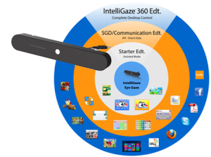 IntelliGaze camera from Germany. A sophisticated system with a high tracking rate and excellent working range. It can accommodate rapid or involuntary head movements. The IntelliGaze 360 includes the Starter Edition, Communication Edition and full computer control using the Alea Desktop. Check out the new features including communication (text-to-speech) in the video