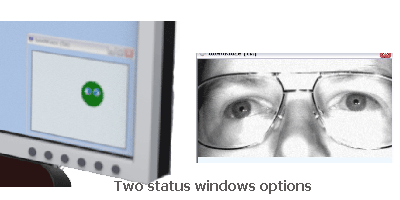 TRACKING STATUS | Because the system has no adjustable hardware parts, positioning the camera in relation to the user is the only task that needs to be performed before the first calibration. An easy-to-understand indicator (insert screen shot) helps the operator set-up the system. Head-location as well as eye tracking status are accessible to the operator ensuring that both the camera and user are in the correct position. This status window will also appear automatically during sue if the user moves out of position and will disappear again when the user is back in position.