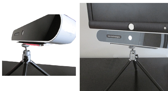 The CAMERA | The Intelligaze camera module can be fitted to an existing monitor or tablet PC. There is a one-time calibration procedure. The calibration can be repeated when needed to allow for changes in camera / monitor position or to enable multiple users to use the same system. The software included allows multiple users to easily store their calibration profile. This allows for easy switching between users without having to recalibrate each time. The camera and illumination unit is fully self-contained, connecting to the host computer via a USB2 port. Using the provided VESA-mount adapter, the camera and illumination unit can be attached to most TFT (e.g. LCD) screens.